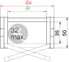 Tenha em atenção o seguinte: para além da largura exterior da calha articulada, terá de adicionar 31 mm para a largura dos dois suportes de deslize!