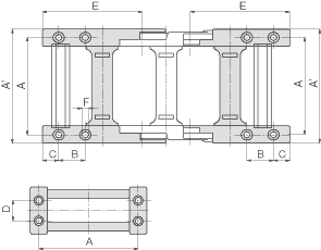 Calhas articuladas série E4.80AG com abertura de ambos os lados e travessas em cada elo