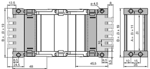 são necessárias 2 abas deslizantes por cada calha articulada