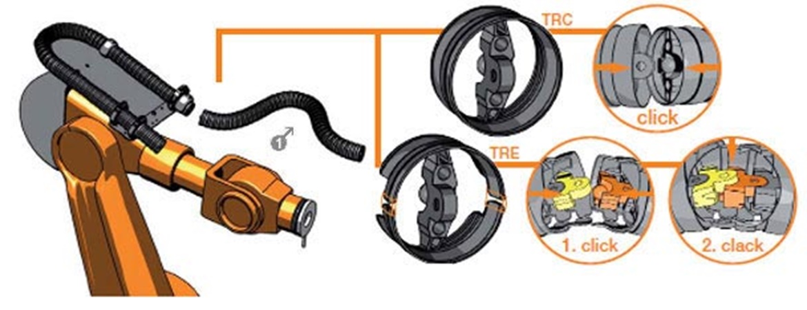 Install mounting bracket with strain relief on the moving end and System komplett fasten triflex® R.