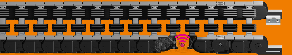 As an option, the new P4.1 can be fitted with smart monitoring sensors. Thereby from a defined wear limit, a signal is issued to the igus® icom communication module and with it maintenance can be planned in advance. Depending on the customer's requirements, the data of the icom module can be used differently – for example for a pure maintenance message or with the connection to the igus data centre for an intelligent and dynamic service life prediction. In this case, the maintenance recommendations via Machine Learning and AI algorithms are constantly compared and defined with the data from many existing applications. Thanks to the intelligent networking of the P4.1 roller chain, the maintenance engineer can access the service life data of the e-chain® at any time.