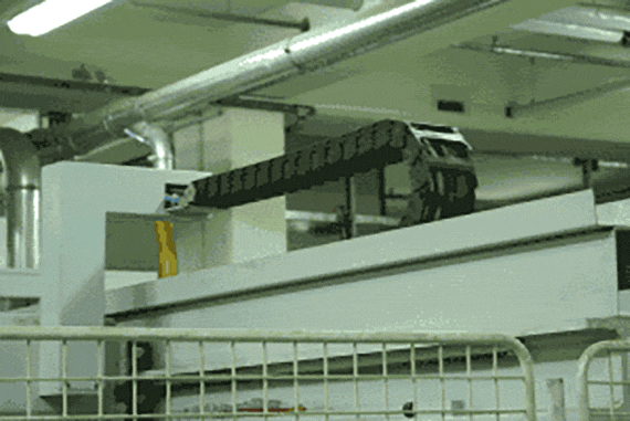 ADA furniture factory, Baierdorf: Wherever cables are in permanent motion, like in this stacking machine, they are replaced by "chainflex®" cables CF5/CF6 from igus® after the initial cables snap.